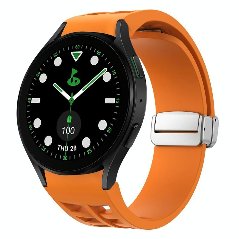 Για Samsung Galaxy Watch 5 Golf Edition Richard μαγνητική πτυσσόμενη ασημένια πόρπη σιλικόνης ζώνη ρολογιού (πορτοκαλί)