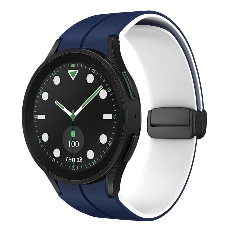 Για το Samsung Galaxy watch 5 Golf Edition Δύο χρώμα μαγνητική πτυσσόμενη πόρπη σιλικόνης ρολόι μπάντα ρολογιού (Midnight Blue + Λευκό)
