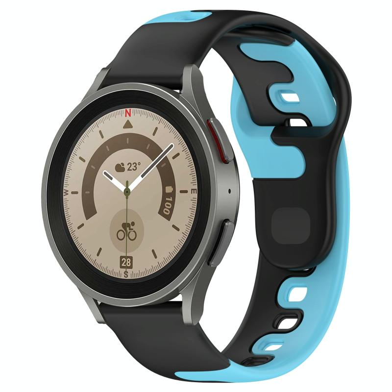 For Samsung Galaxy Watch 5 Pro 45mm 20mm Double Color Silicone Watch Band(Black+Blue)