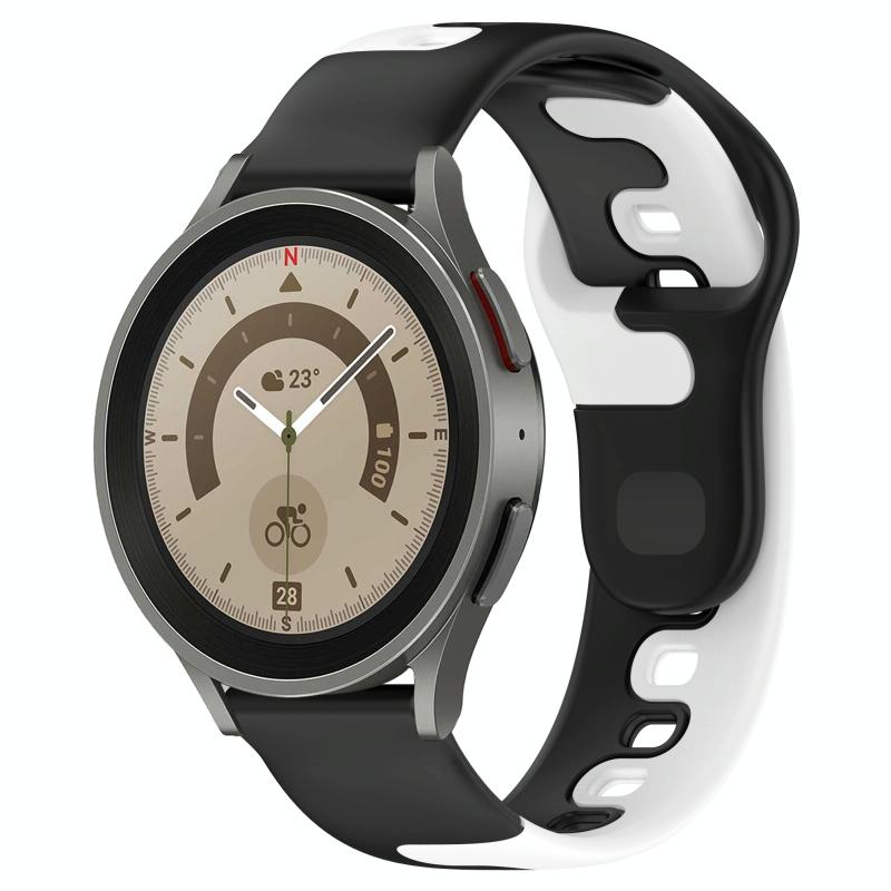 For Samsung Galaxy Watch 5 Pro 45mm 20mm Double Color Silicone Watch Band(Black+White)