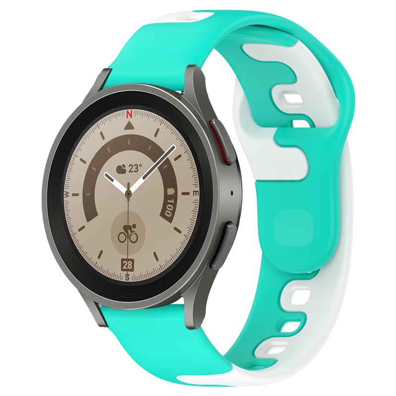 For Samsung Galaxy Watch 5 Pro 45mm 20mm Double Color Silicone Watch Band(Cyan+White)