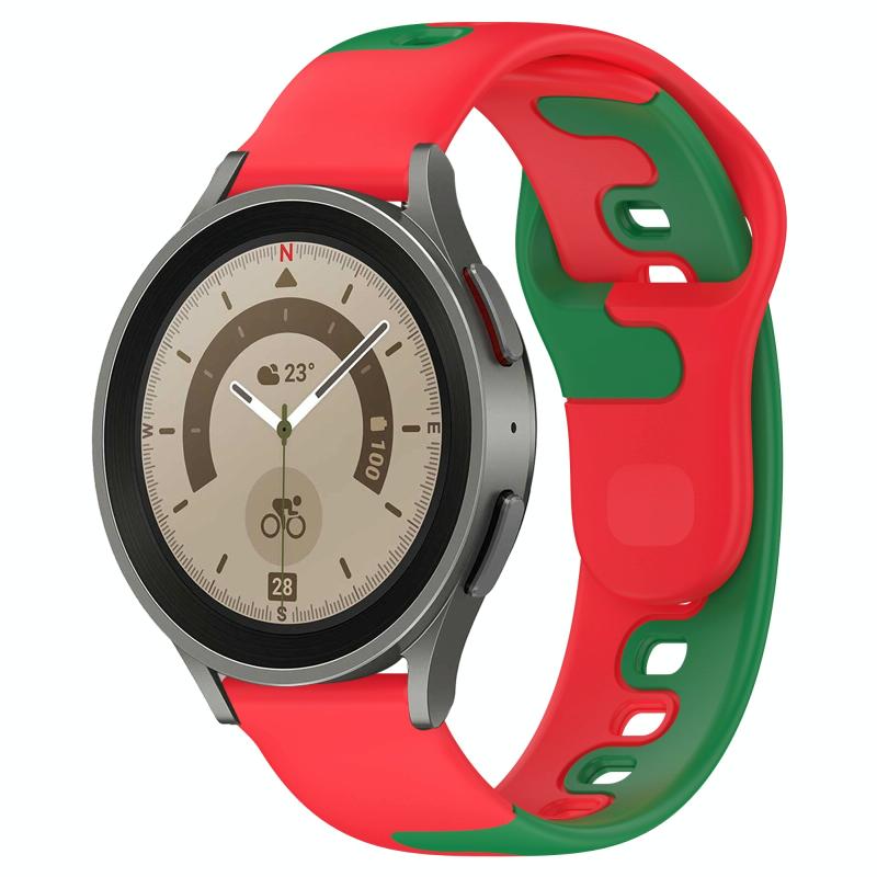 For Samsung Galaxy Watch 5 Pro 45mm 20mm Double Color Silicone Watch Band(Red+Green)