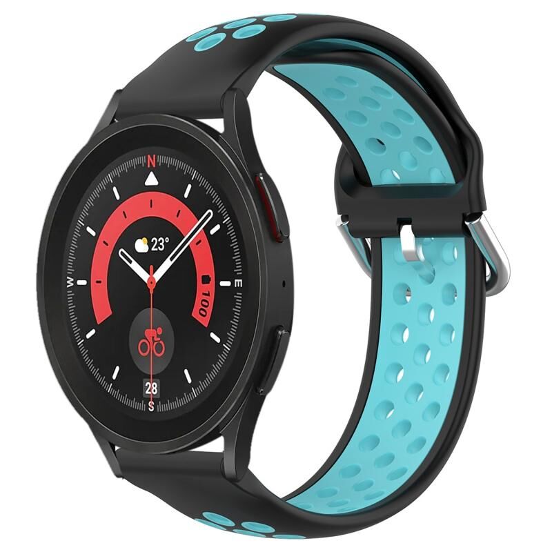 Για το Samsung Galaxy Watch 5 Pro 45mm 20mm διάτρητη αναπνεύσιμη αθλητική ζώνη ρολογιού σιλικόνης (μαύρο+μπλε)