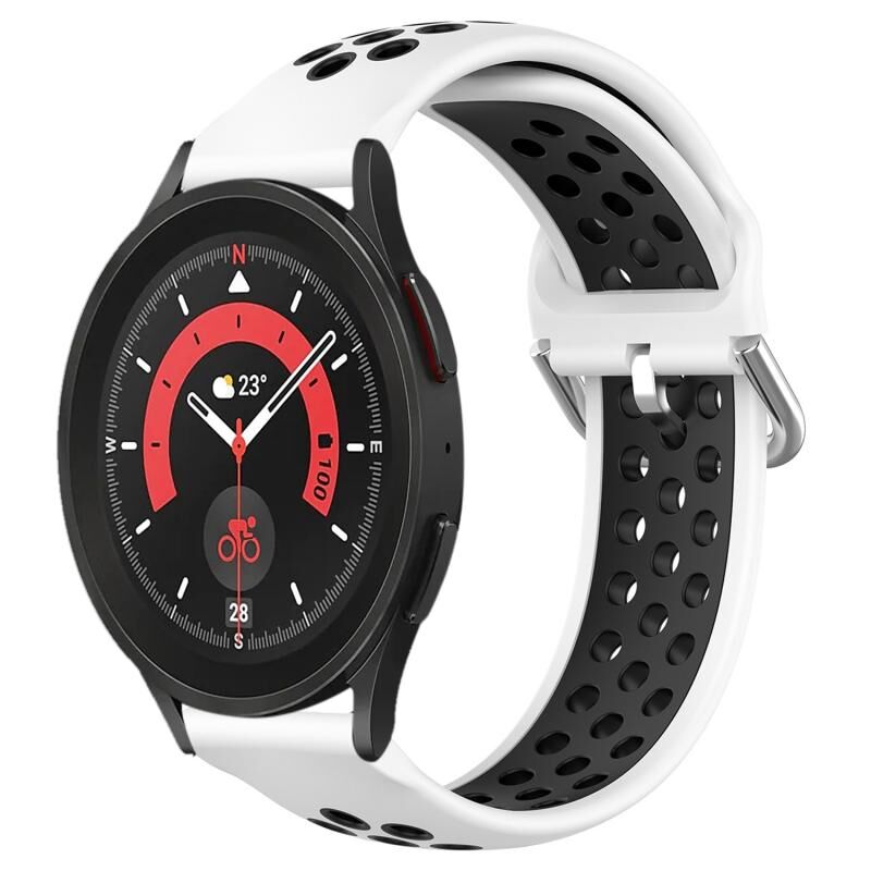 Για το Samsung Galaxy Watch 5 Pro 45mm 20mm διάτρητη αναπνεύσιμη αθλητική ζώνη ρολογιού σιλικόνης (Λευκό+Μαύρο)