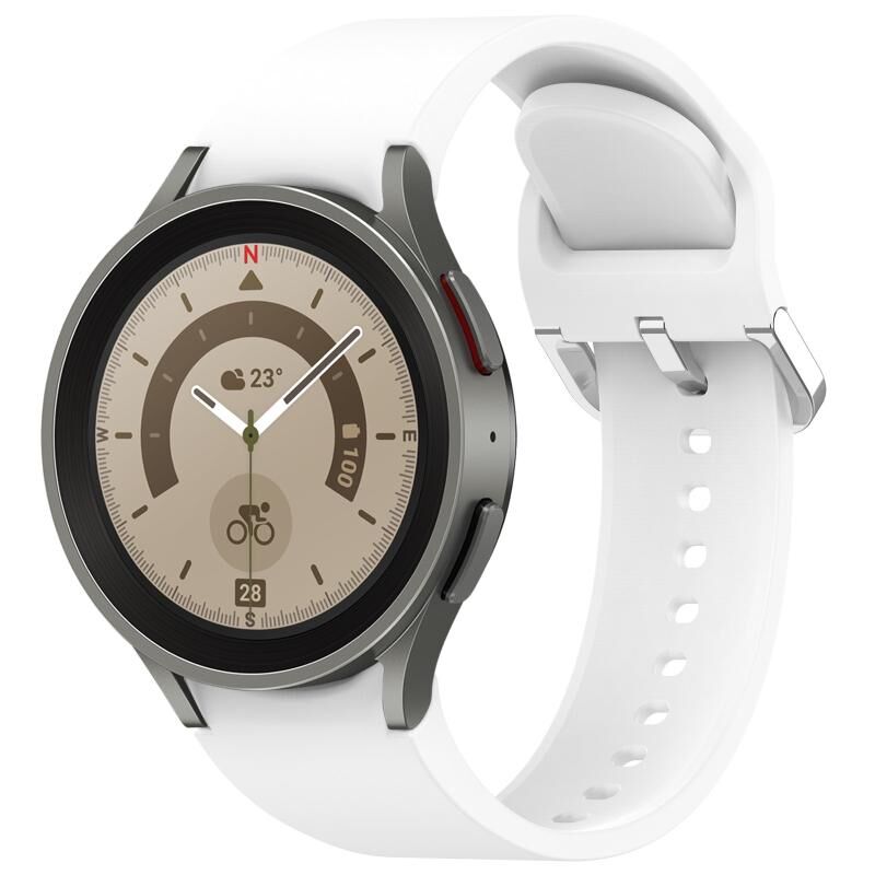 For Samsung Galaxy Watch 5 Pro 45mm Solid Color Silver Buckle Quick Release Silicone Watch Band(White)