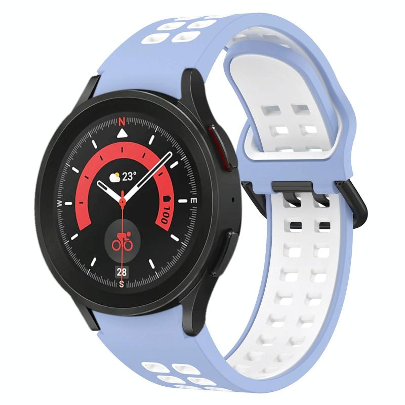 Για Samsung Galaxy Watch 5 Pro 45mm Δίχρωμο Αναπνεύσιμο Λουράκι Σιλικόνης (Ανοιχτό Μπλε + Λευκό)