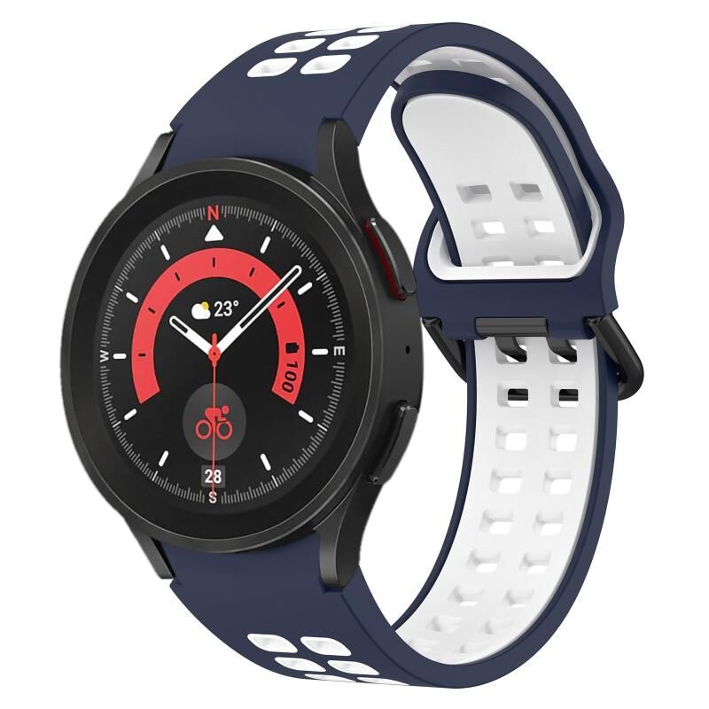 Για Samsung Galaxy Watch 5 Pro 45mm Δίχρωμο Αναπνεύσιμο Λουράκι Σιλικόνης (Μπλε Μεσονυχτί + Λευκό)