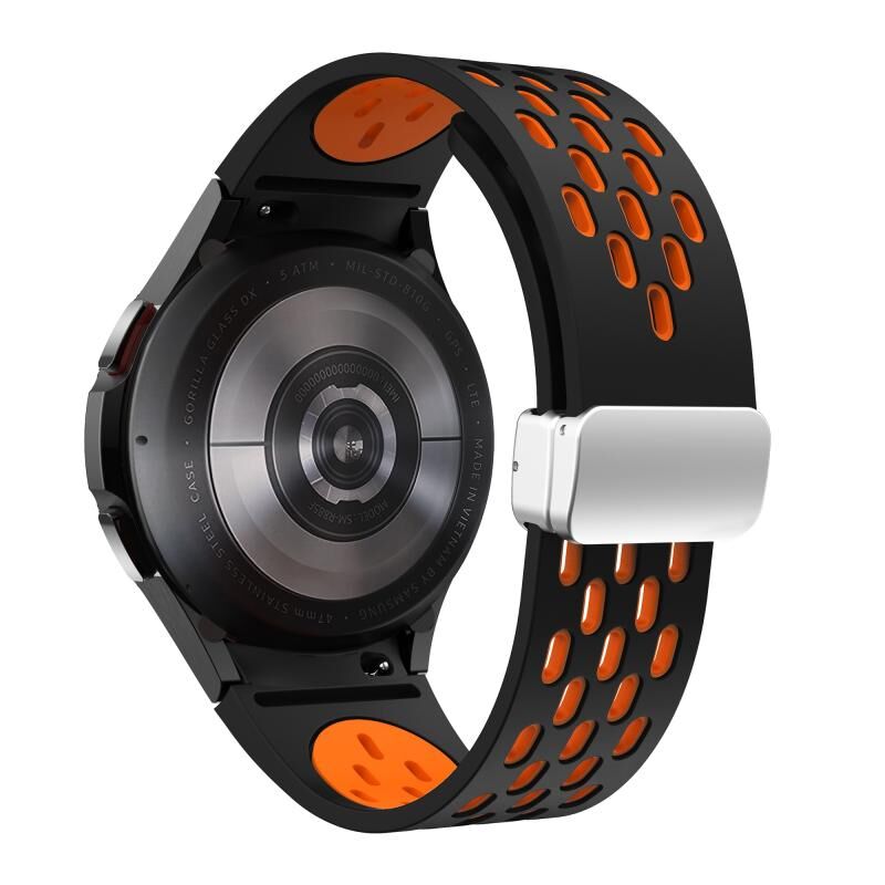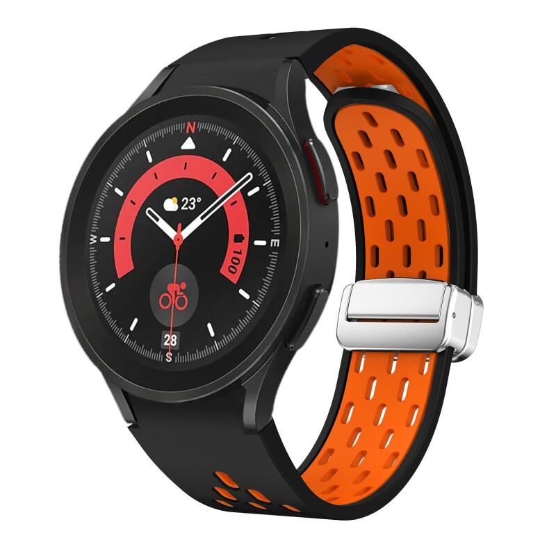 For Samsung Galaxy Watch 5 Pro 45mm Two Color Magnetic Folding Silver Buckle Silicone Watch Band(Black Orange)