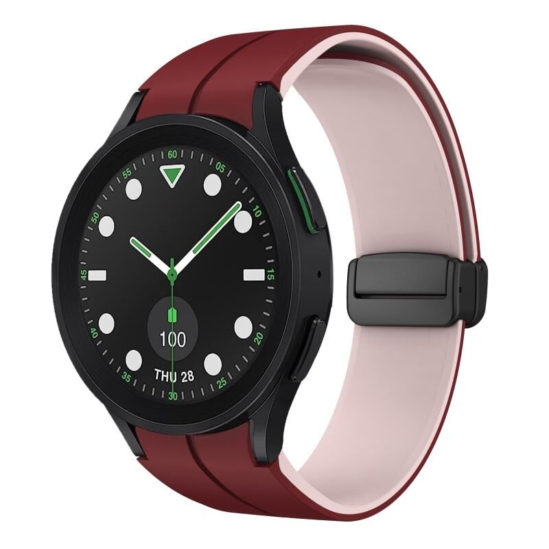 Για το Samsung Galaxy watch 5 Pro Golf Edition Δύο χρώματα μαγνητική πτυσσόμενη πόρπη σιλικόνης (κόκκινο κρασί + ροζ)
