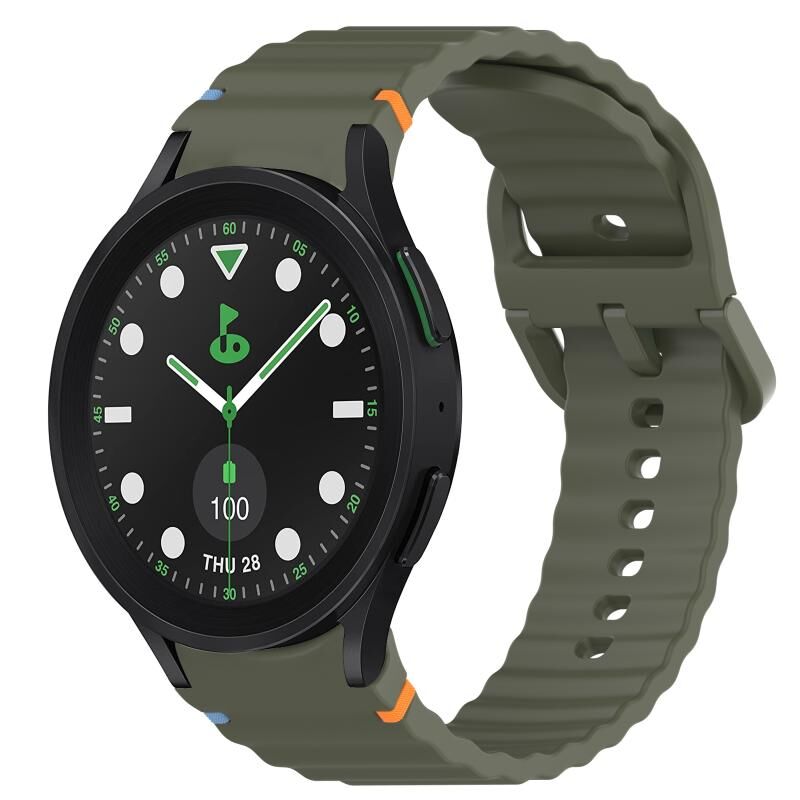 Για το Samsung Galaxy Watch 5 Pro Golf Edition Wavy Grain Stitched Quick Release Silicone Watch Band (Στρατιωτικό πράσινο)