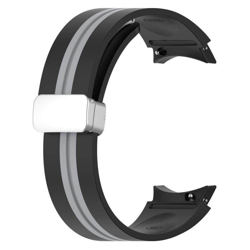 For Samsung Galaxy Watch 5 Pro Two-color Silver Buckle Silicone Watch Band(Black Grey)