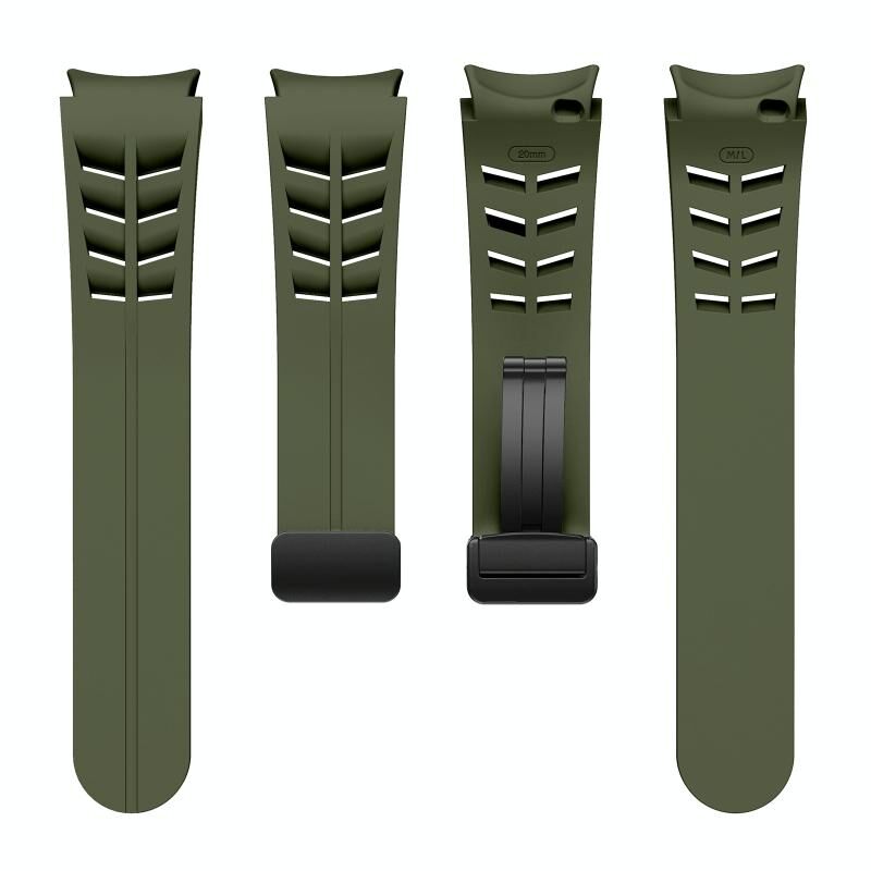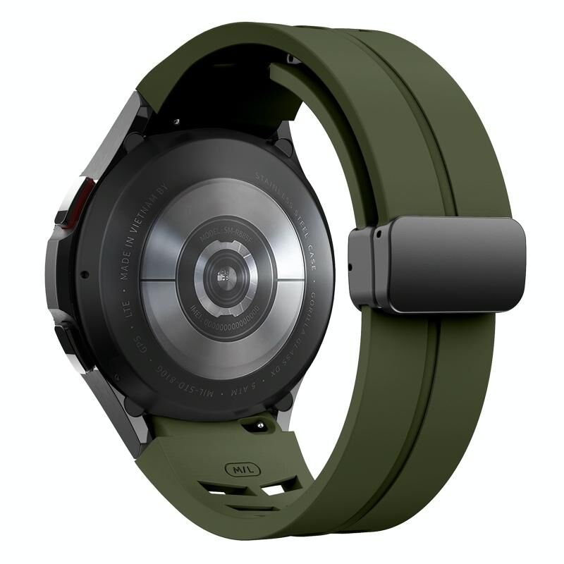 Για το Samsung Galaxy Watch 6 40 / 44mm Richard Μαγνητική πτυσσόμενη μαύρη ζώνη ρολογιού σιλικόνης με αγκράφα (πράσινο στρατού)