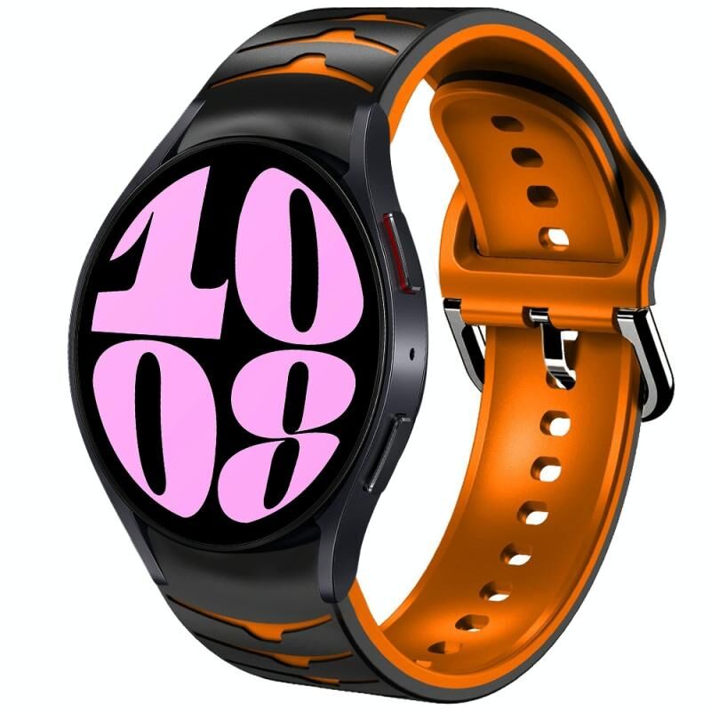 Για το Samsung Galaxy Watch 6 40 χιλιοστά καμπύλη υφή σιλικόνης ρολόι μπάντα ρολογιού (μαύρο + πορτοκαλί)