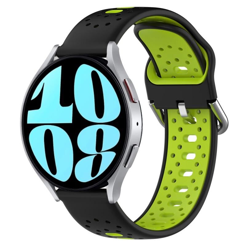 Για το Samsung Galaxy Watch 6 44mm 20mm αναπνεύσιμο λουράκι σιλικόνης δύο χρωμάτων (Μαύρο+Lime Green)