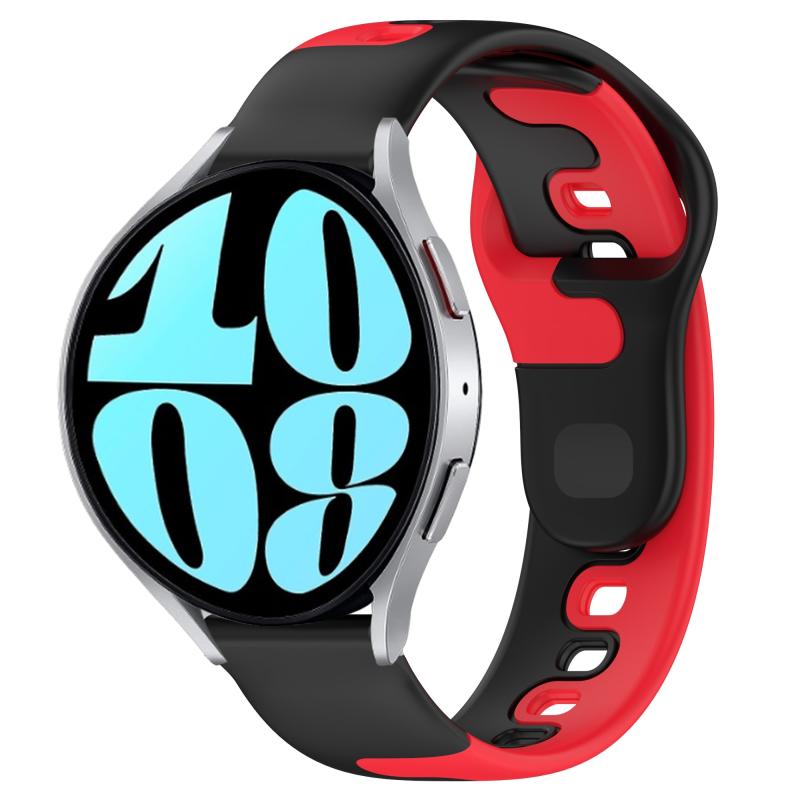 For Samsung Galaxy Watch 6 44mm 20mm Double Color Silicone Watch Band(Black+Red)