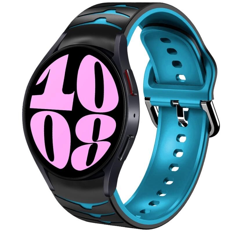 Για το Samsung Galaxy Watch 6 44 χιλιοστά καμπύλη υφή σιλικόνης ρολόι μπάντα ρολογιού (μαύρο + μπλε)