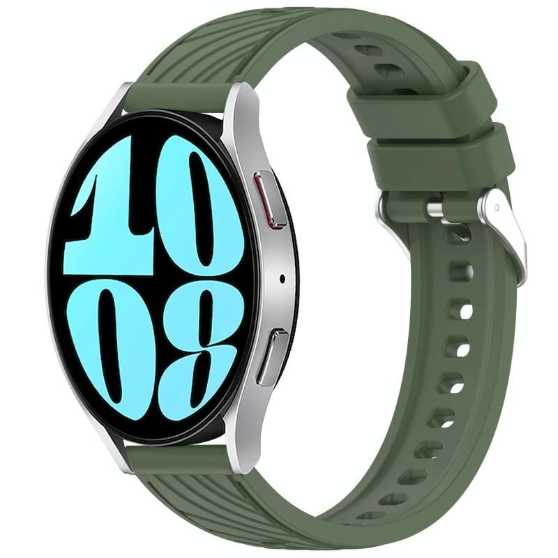 Για το Samsung Galaxy Watch 6 44 χιλιοστά λωρίδα υφή σιλικόνης 20 χιλιοστά ρολόι μπάντα (σκούρο πράσινο)