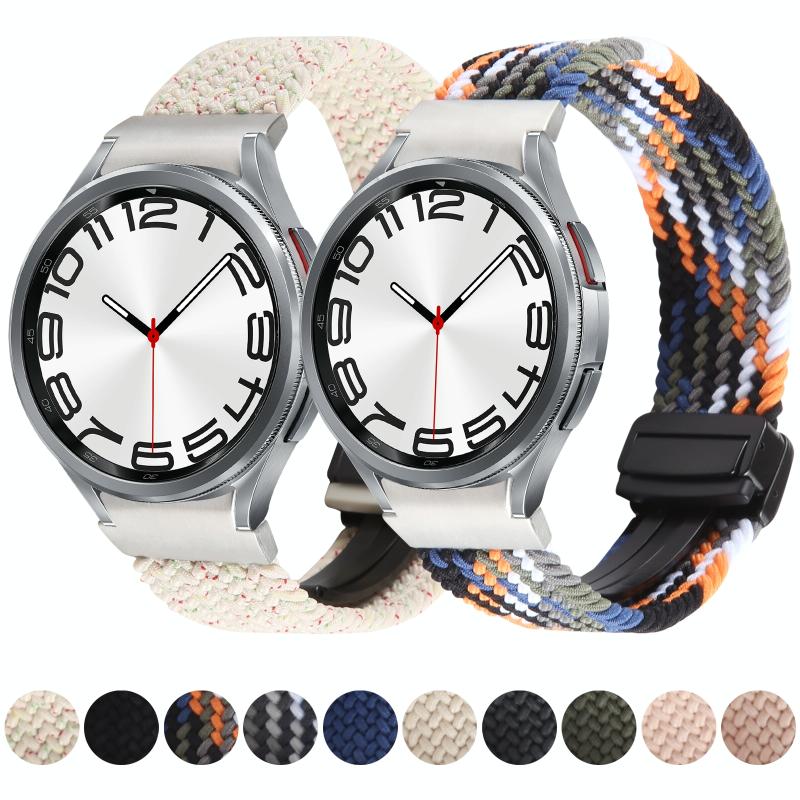 For Samsung Galaxy Watch 6 / 5 / 4 Magnetic Fold Buckle Nylon Woven Watch Band(Colorful Black)