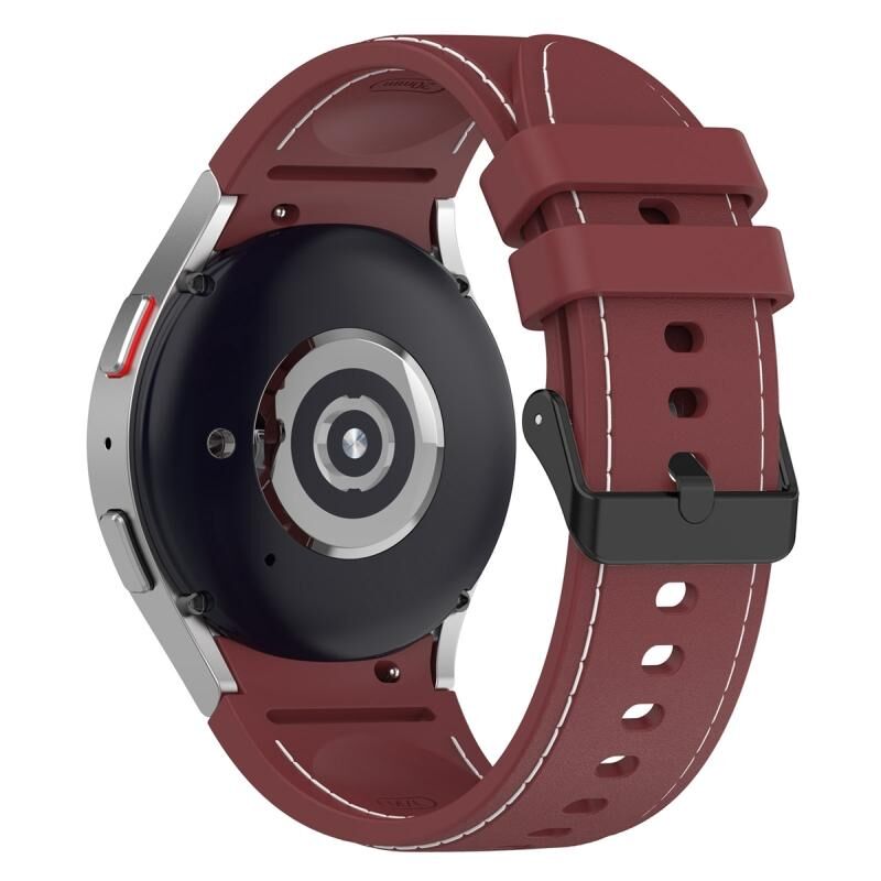 Για Samsung Galaxy Watch 6 / 6 Κλασικό δερμάτινο μαύρο λουράκι σιλικόνης, μέγεθος: L Size (Wine Red)