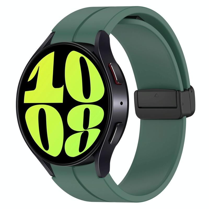 Για το Samsung Galaxy Watch 6 / 6 Classic Μαγνητική πτυσσόμενη μαύρη ζώνη σιλικόνης με πόρπη (σκούρο πράσινο)