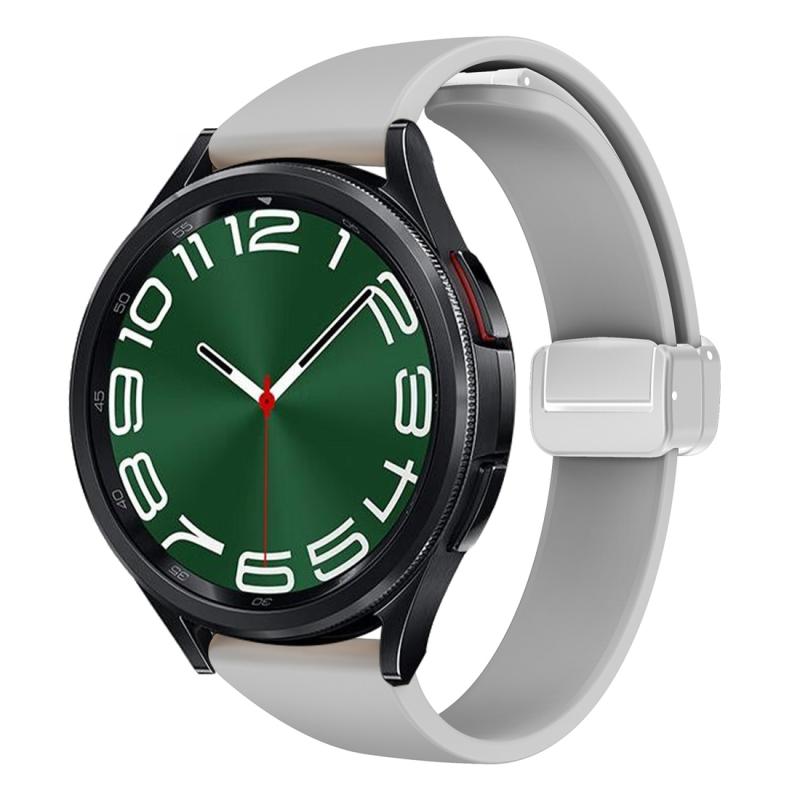 For Samsung Galaxy Watch 6 / 6 Classic Magnetic Silver Buckle Slim Silicone Watch Band(Light Grey)