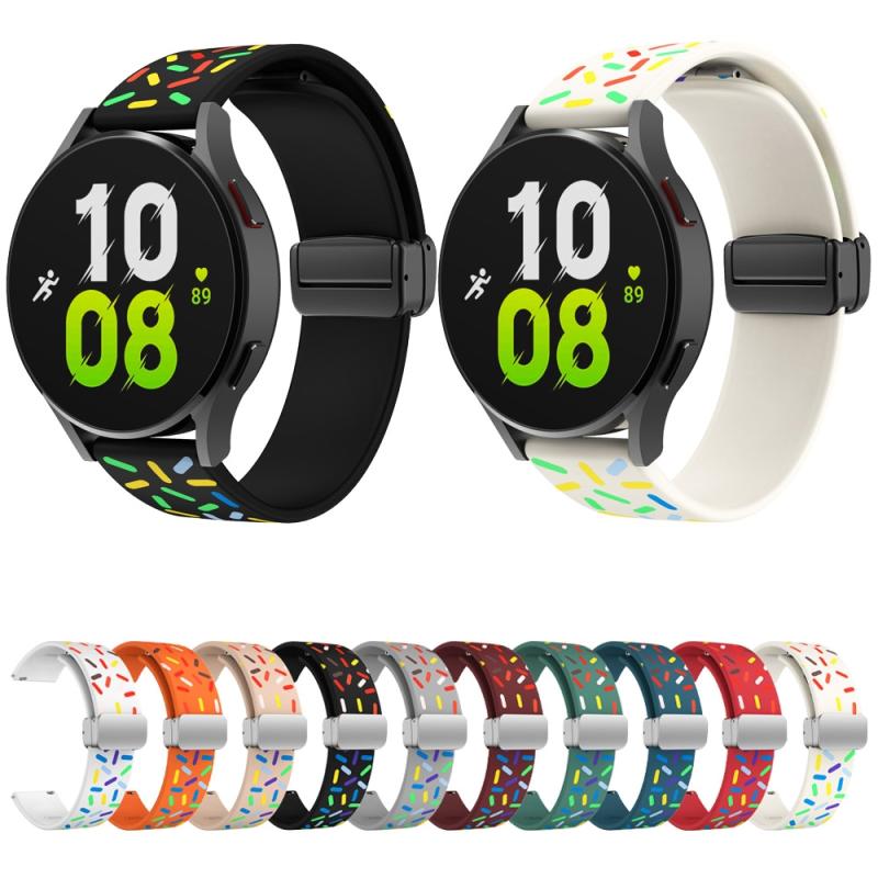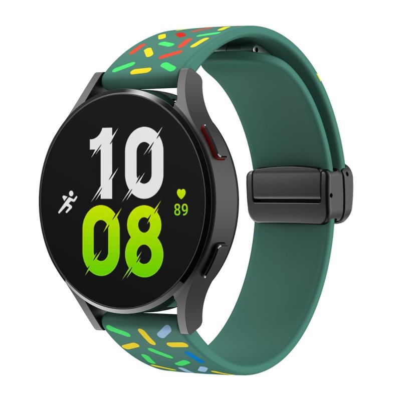 For Samsung Galaxy Watch 6 / 6 Classic Sports Rainbow Dots Magnetic Black Buckle Silicone Watch Band(Green)