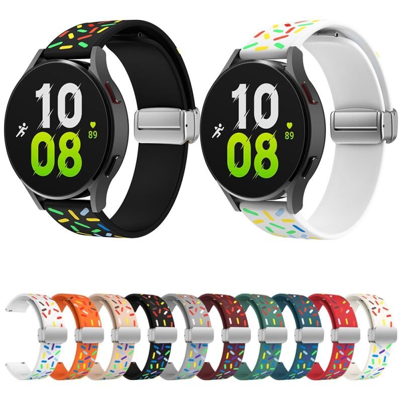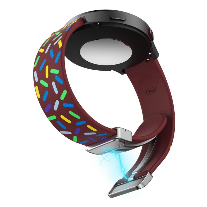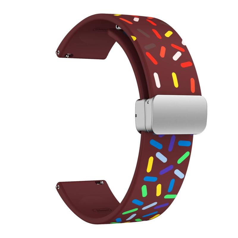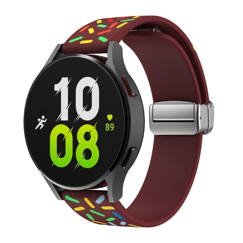 For Samsung Galaxy Watch 6 / 6 Classic Sports Rainbow Dots Magnetic Silver Buckle Silicone Watch Band(Wine Red)