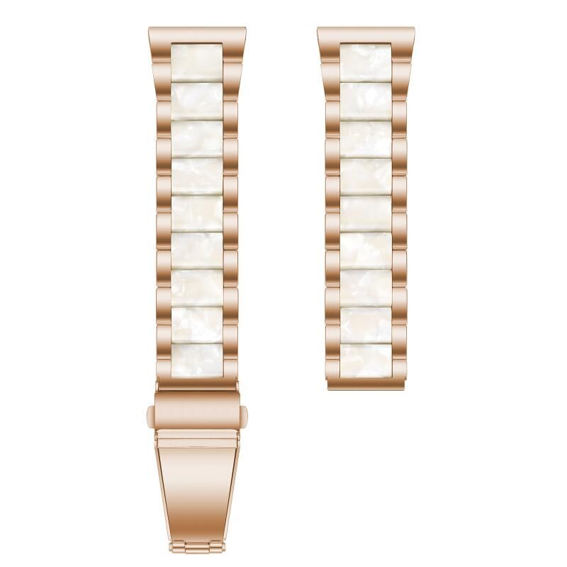 Για το Samsung Galaxy Watch 6 / 6 Classic Τρεις χάντρες ρητίνη μέταλλο ρολόι μπάντα (Rose Gold White)
