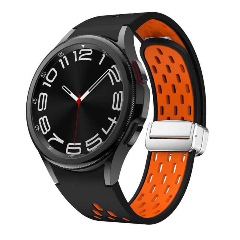 Για Samsung Galaxy Watch 6 / 6 Classic Δύο χρώμα μαγνητικό πτυσσόμενο ασημένια πόρπη ρολόι μπάντα ρολόι (μαύρο πορτοκαλί)