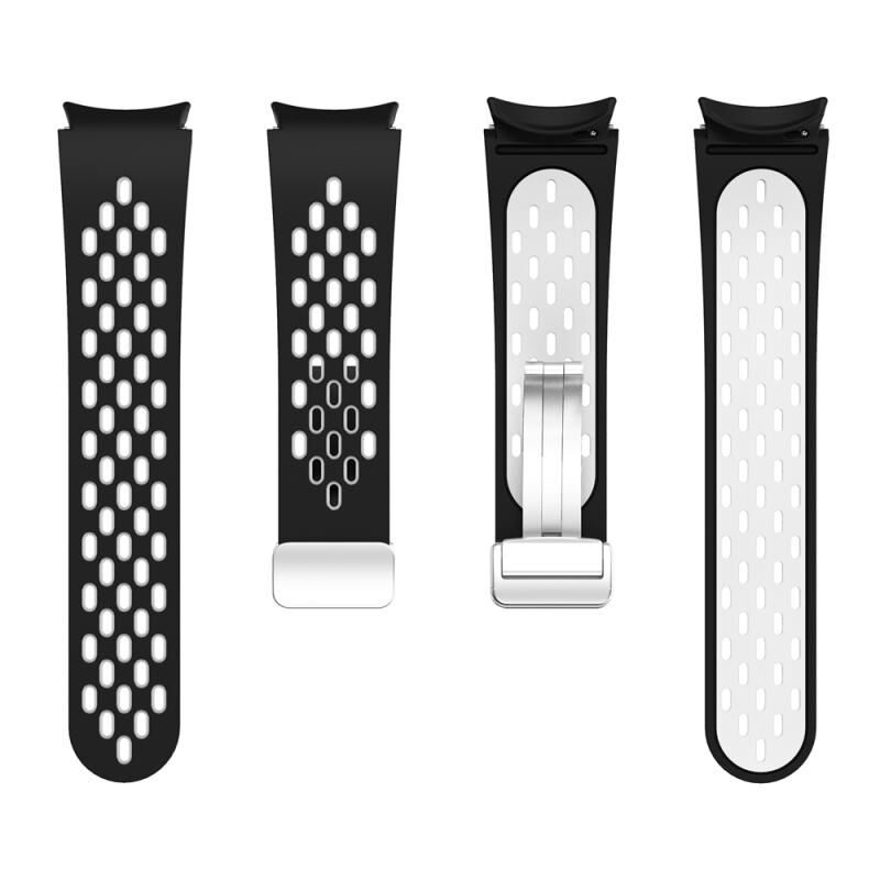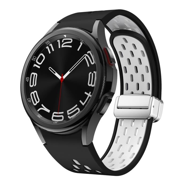 Για Samsung Galaxy Watch 6 / 6 Classic Δύο χρώματα μαγνητική πτυσσόμενη ασημένια ζώνη ρολογιού με αγκράφα (μαύρο λευκό)