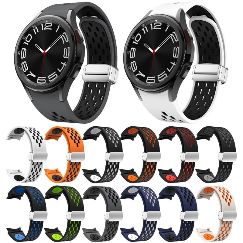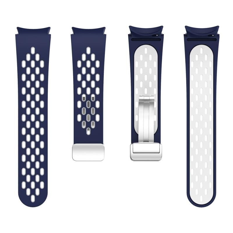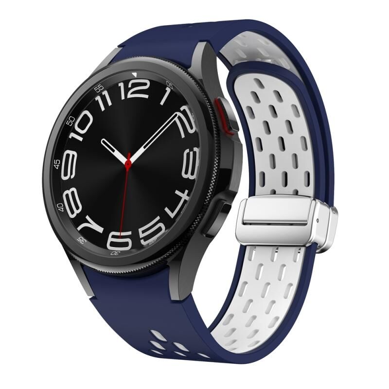Για το Samsung Galaxy Watch 6 / 6 Classic Δύο χρώμα μαγνητικό πτυσσόμενο ασημένια πόρπη ρολόι μπάντα ρολόι (Μεσάνυχτα μπλε λευκό)