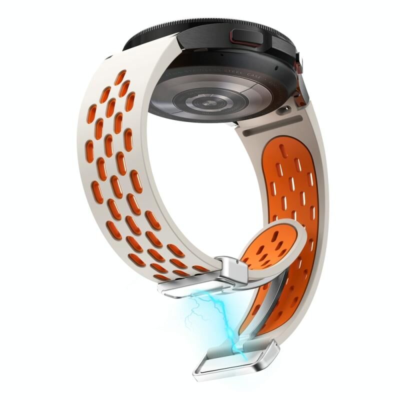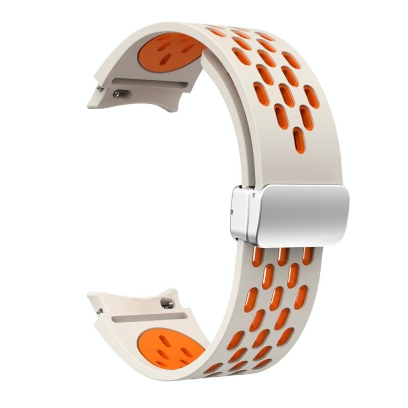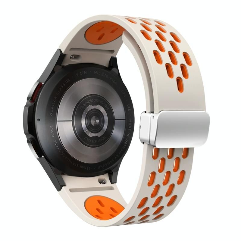Για Samsung Galaxy Watch 6 / 6 Classic Δύο χρώμα μαγνητικό πτυσσόμενο ασημένια πόρπη ρολόι μπάντα ρολόι (Starlight πορτοκαλί)