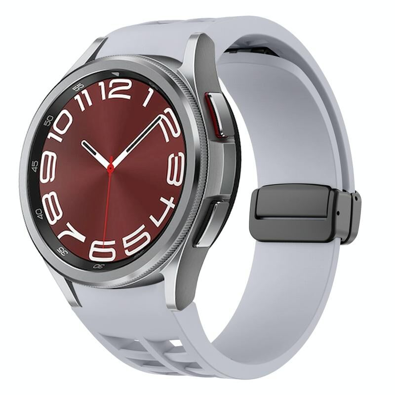 Για Samsung Galaxy Watch 6 class 43 / 47mmic Richard Μαγνητική Πτυσσόμενη μαύρη ζώνη ρολογιού σιλικόνης (ανοιχτό γκρι)