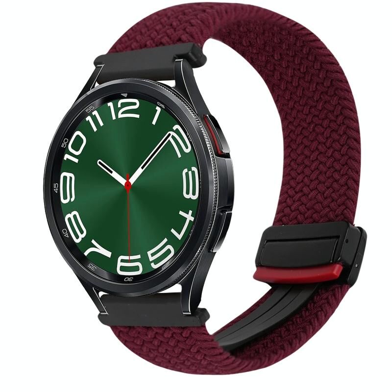 Για Samsung Galaxy Watch 6 Classic 20mm μαγνητική αγκράφα πλεκτό λουράκι ρολογιού (κόκκινο κρασί)
