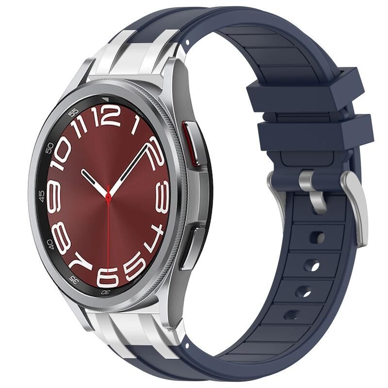 For Samsung Galaxy Watch 6 Classic 20mm Quick Release Silver Buckle Royal Silicone Watch Band(Navy Blue)