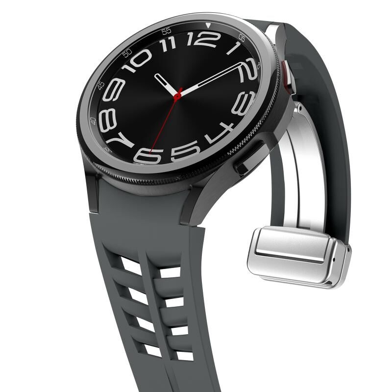 Για Samsung Galaxy Watch 6 Classic 43 / 47mm Richard μαγνητική πτυσσόμενη ασημένια πόρπη σιλικόνης ρολόι μπάντα (Space Gray)
