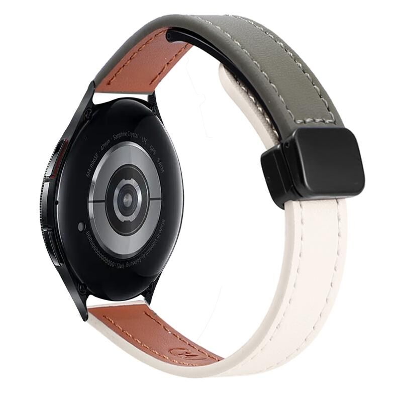 For Samsung Galaxy Watch 6 Classic 43 / 47mm Slim Magnetic Buckle 20mm Microfiber Leather Watch Band(Apricot+Avocado Green)