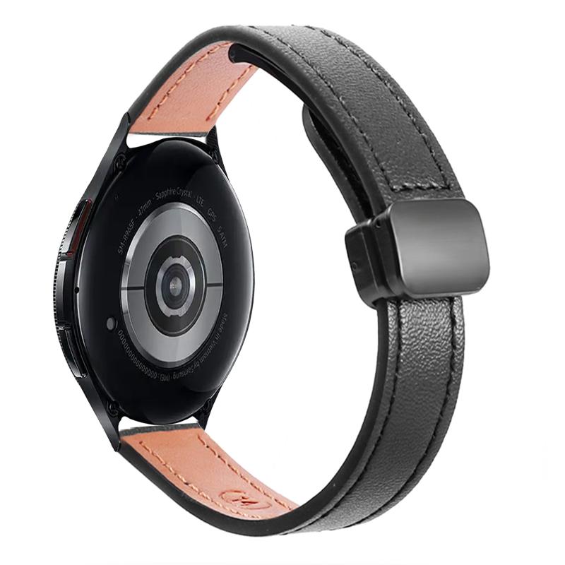 For Samsung Galaxy Watch 6 Classic 43 / 47mm Slim Magnetic Buckle 20mm Microfiber Leather Watch Band(Black)