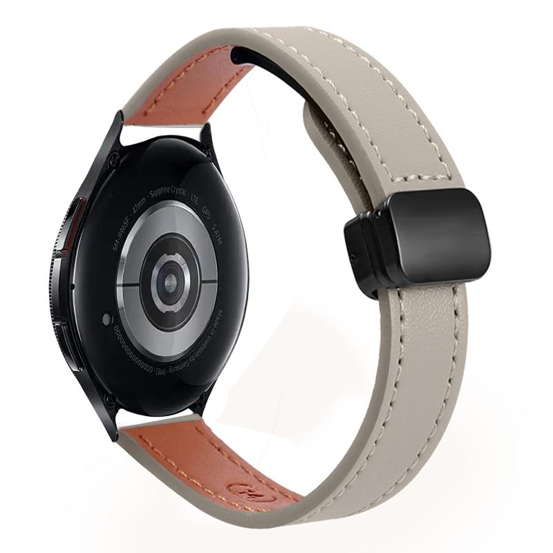 For Samsung Galaxy Watch 6 Classic 43 / 47mm Slim Magnetic Buckle 20mm Microfiber Leather Watch Band(Calf Elephant Gray)