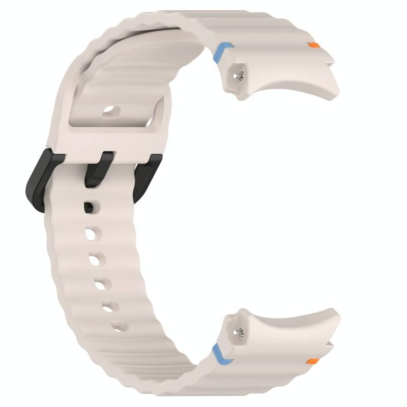 Για το Samsung Galaxy Watch 6 Classic 43 / 47mm Wavy Grain Stitched Black Buckle Silicone Watch Band (Starlight)