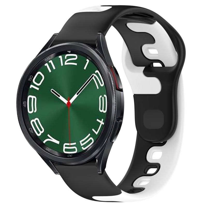For Samsung Galaxy Watch 6 Classic 43mm 20mm Double Color Silicone Watch Band(Black+White)