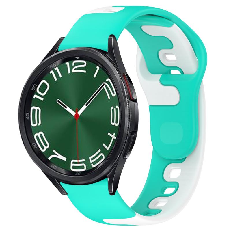 For Samsung Galaxy Watch 6 Classic 43mm 20mm Double Color Silicone Watch Band(Cyan+White)