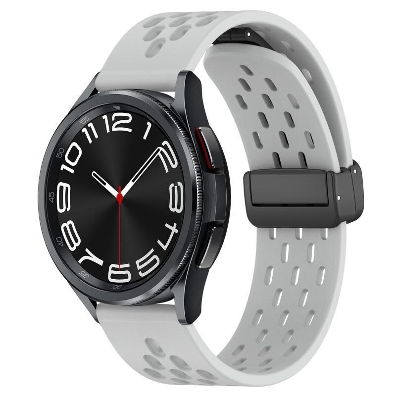 Για Samsung Galaxy Watch 6 Classic 43mm 20mm Πτυσσόμενο μαγνητικό κούμπωμα ζώνη ρολογιού σιλικόνης (ανοιχτό γκρι)
