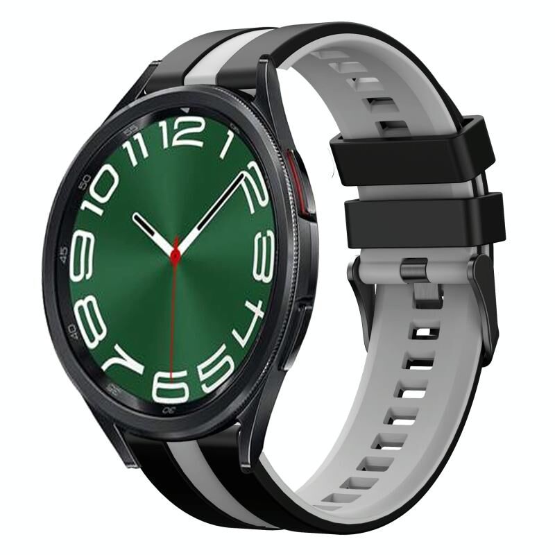 Για το Samsung Galaxy Watch 6 Classic 43mm 20mm δύο χρωμάτων αθλητικό λουράκι σιλικόνης (μαύρο+γκρι)
