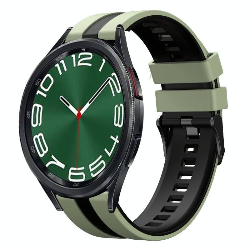 Για το Samsung Galaxy Watch 6 Classic 43mm 20mm δύο χρωμάτων αθλητική ζώνη ρολογιού σιλικόνης (ανοιχτό πράσινο+μαύρο)