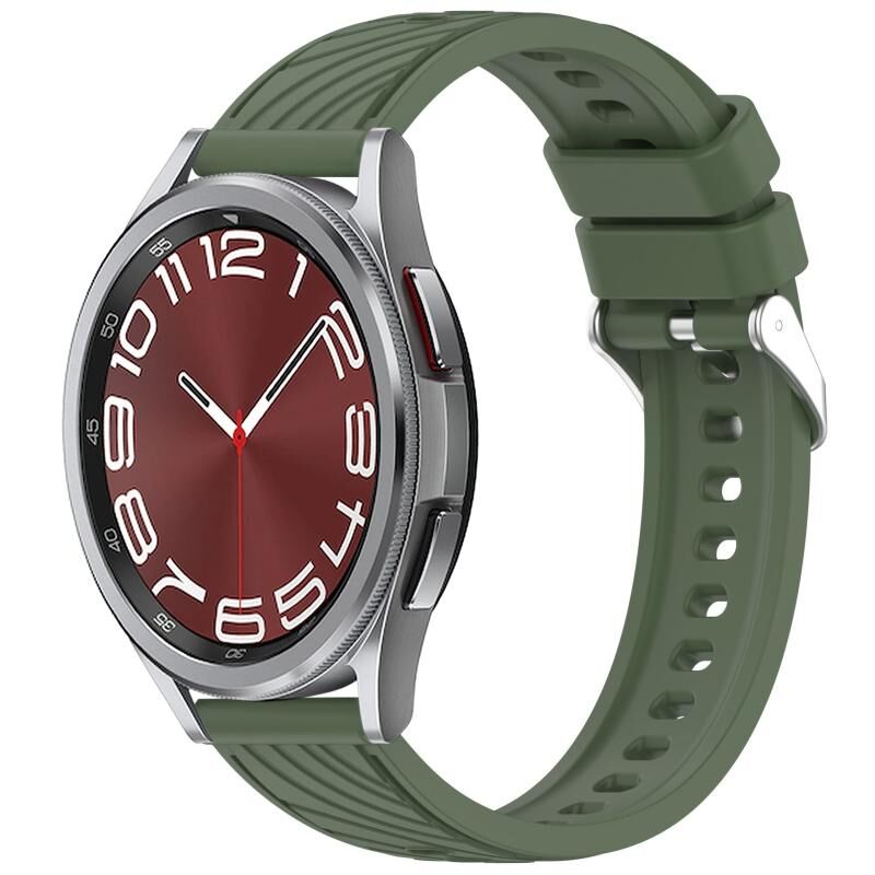 Για το Samsung Galaxy Watch 6 Classic 43 χιλιοστά λωρίδα υφή σιλικόνης 20 χιλιοστά ρολόι μπάντα (σκούρο πράσινο)