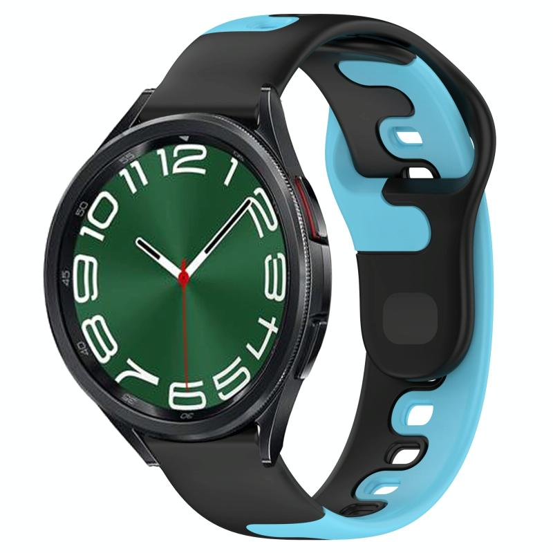 For Samsung Galaxy Watch 6 Classic 47mm 20mm Double Color Silicone Watch Band(Black+Blue)