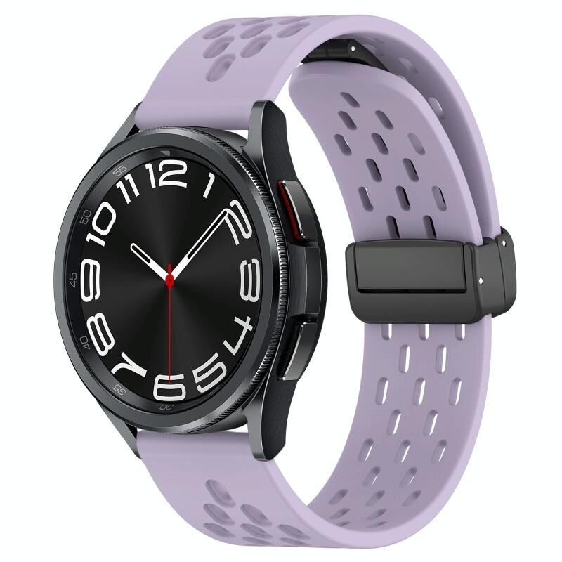 Για Samsung Galaxy Watch 6 Classic 47mm 20mm Πτυσσόμενο μαγνητικό κούμπωμα ζώνη ρολογιού σιλικόνης (μωβ)
