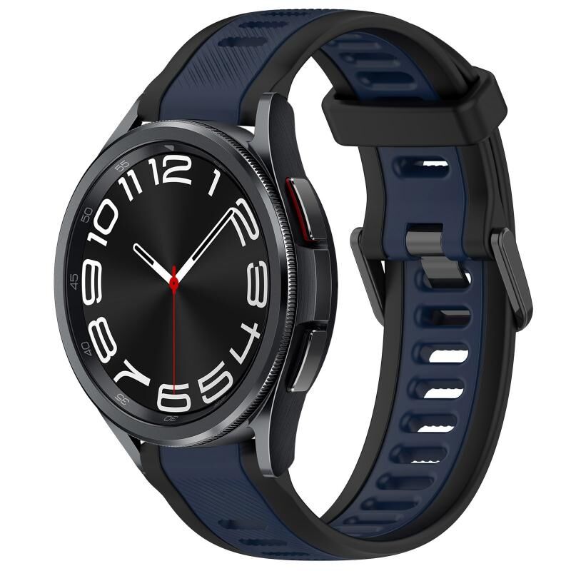 Για το Samsung Galaxy Watch 6 Classic 47mm 20mm Δύο χρώμα υφή σιλικόνης ρολόι μπάντα ρολογιών (Midnight Blue + Μαύρο)