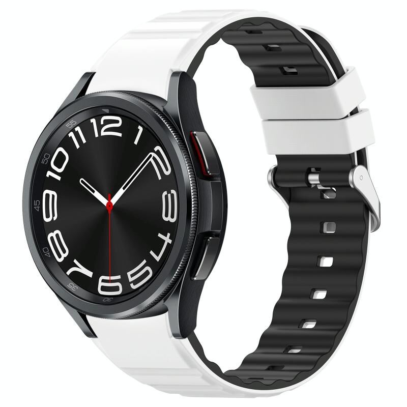 Για το Samsung Galaxy Watch 6 Classic Δύο χρώμα οριζόντια σιλικόνη ρολόι μπάντα ρολογιού (λευκό μαύρο)